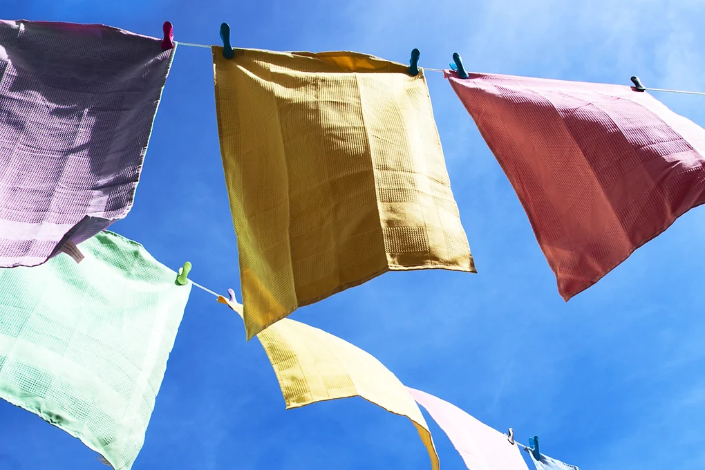 Sušení venku není jen romantika. Sluneční světlo má přirozené antibakteriální účinky. Pokud můžeš, suš prádlo na vzduchu. Uvnitř větrej a nenechávej mokré prádlo dlouho v pračce, protože zatuchnutí vzniká velmi rychle.