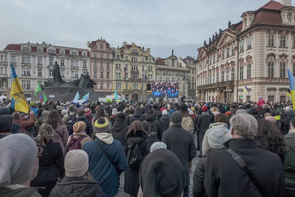 V neděli 23. února 2025 se na pražském Staroměstském náměstí konalo shromáždění s názvem Společně za Ukrajinu. Akce proběhla symbolicky den před výročím začátku ruské invaze a připomněla, že solidarita a podpora napadené země zůstávají pro mnoho lidí důležité i po třech letech války.